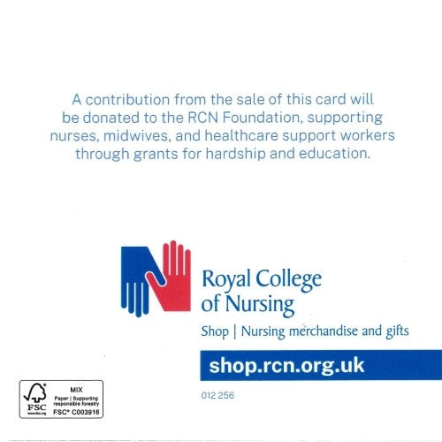 A contribution from the sale of this card will be donated to the RCN Foundation, supporting nurses, midwives, and healthcare support workers through grants for hardship and education.